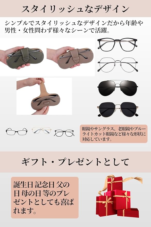 ■【スタイリッシュなデザイン】シンプルでスタイリッシュなデザインだから10代、20代、30代、40代、50代、60代、 年齢や男性・女性問わず様々なシーンで活躍。眼鏡やサングラス、老眼鏡やブルーライトカット眼鏡など様々な形状に対応しています。■【ギフト・プレゼントとして】誕生日 記念日 父の日 母の日 等のプレゼントとしても喜ばれます。