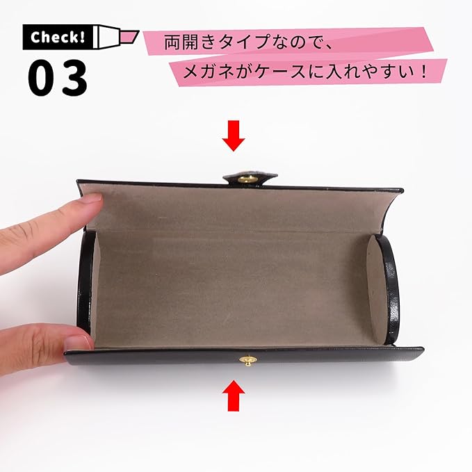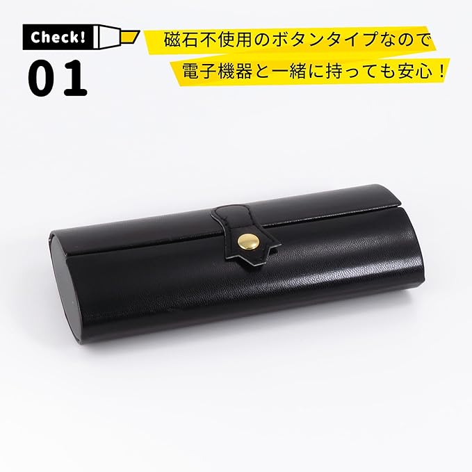【.不使用】ボタンタイプなので、鞄の中で電子機器と持ち歩くのに.の付いたメガネケースが抵抗がある方にはおすすめです。