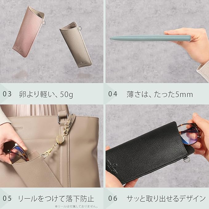 ✅【 落下も防げるDカン付き 】Dカンに、別売りのリールストラップを付ければお持ちのバッグの持ち手に取り付けることができ、メガネの落下を防げます。