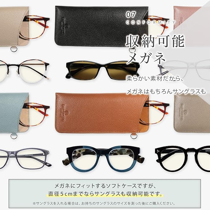 ✅【 サイズ 素材 】サイズ:縦17.5cm 横7.5cm 厚さ0.5cm 素材:本牛革(ベジタブルタンニン鞣しシュリンクレザー) 仕様:メガネスペース 1 ✅【 ご注意 】すべてのメガネやサングラスに適合するわけではございませんので収納可能サイズを確認後ご購入ください。 ✅【 ご注意 】 ※ BLUE SINCEREが製造・販売する製品は知的財産権の取得を随時行っております。