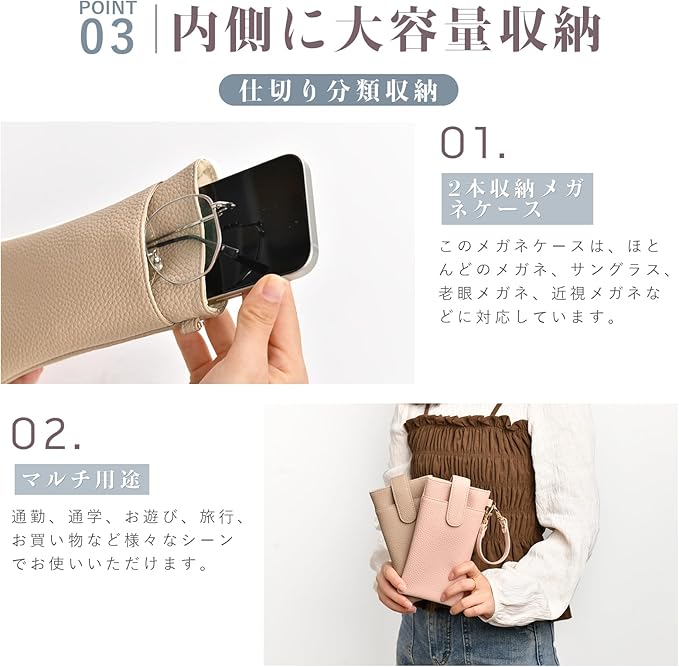 [YooFa] メガネケース 2個収納 レディース ソフト ダブル眼鏡ケース おしゃれ ダブル眼鏡収納袋 可愛い スリム 合皮 持ち運び サングラスケース ダブルメガネオーガナイザー 御洒落 ハンドストラップ付き メガネ収納袋 女性 メンズ メガネポーチ | oioioichan