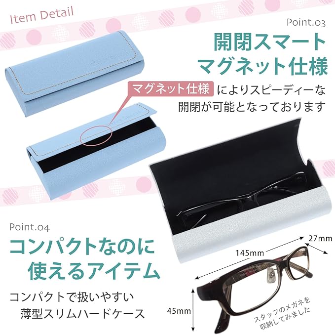 【しっかり守るハードタイプ、優れた機能】ケース内側は、起毛したブラックベロア調の生地を全面に配置。振動から大切なアイウェアを保護し、傷つけることなく持ち運びいただけます。また、ベロアとグラスとのコントラストが美しくケースから取り出す瞬間も上質な印象に。外寸156m㎜ 60㎜ 30㎜、重さ90gのコンパクトなサイズ感。※スリム&コンパクトな仕様です!すべてのメガネやサングラスに適合するケースではございませんので収納可能サイズを必ずご確認くださいませ。