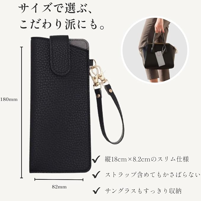 【幅広い対応サイズ】 一般的な眼鏡・サングラスはもちろん、ブルーライトカットメガネなどにも対応したサイズ感です。