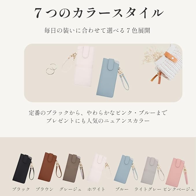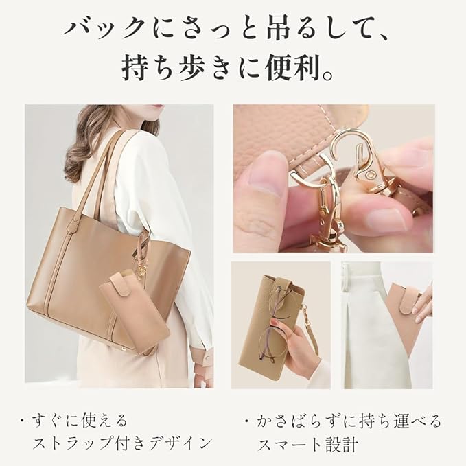 【おしゃれで可愛いデザイン】 シンプルながらも上品な質感が魅力。大人可愛いカラーとシボ感のあるフェイクレザーで、毎日の持ち歩きにぴったり。