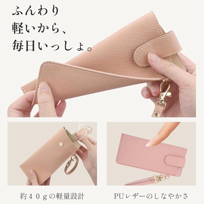 【スリムで軽量なソフトタイプ】 柔らかい合皮素材を使用した薄型デザイン。軽くてかさばらないので、バッグの中でもスマートに収納できます。