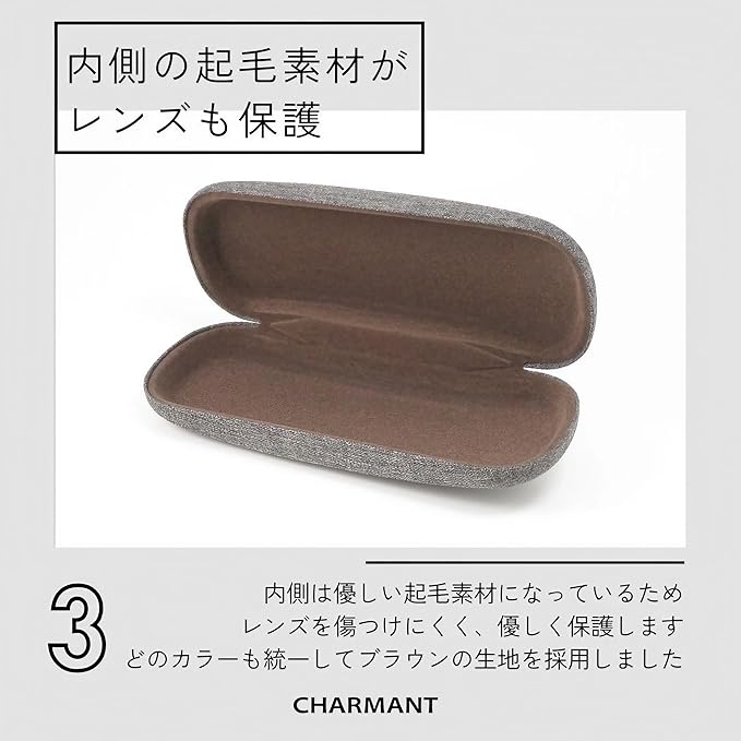 【内側の起毛素材がレンズも保護】 内側は優しい起毛素材になっているためレンズを傷つけにくく、優しく保護します。どのカラーも統一してブラウンの生地を採用しました。