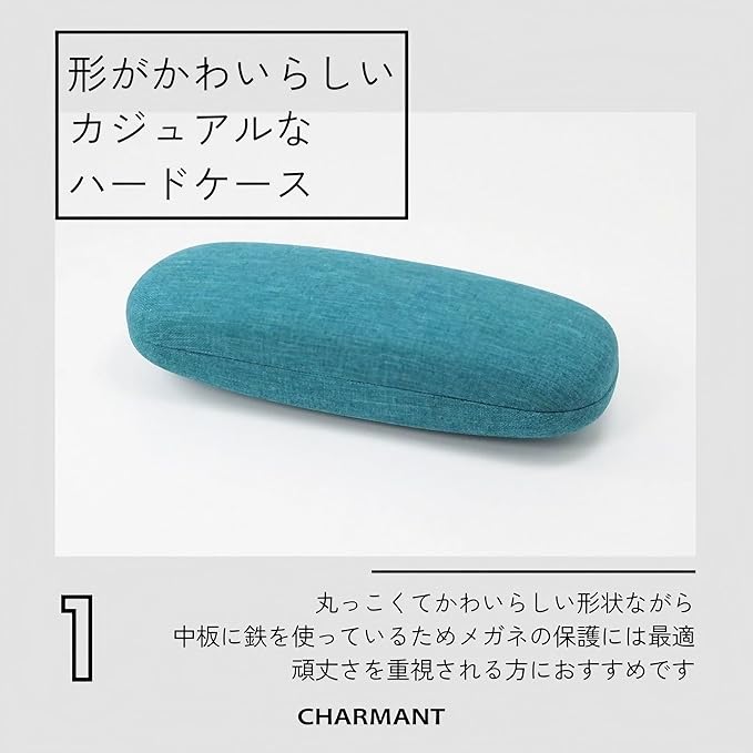 【形がかわいらしいカジュアルなハードケース】 丸っこくてかわいらしい形状ながら中板に鉄を使っているためメガネの保護には最適。頑丈さを重視される方におすすめです。