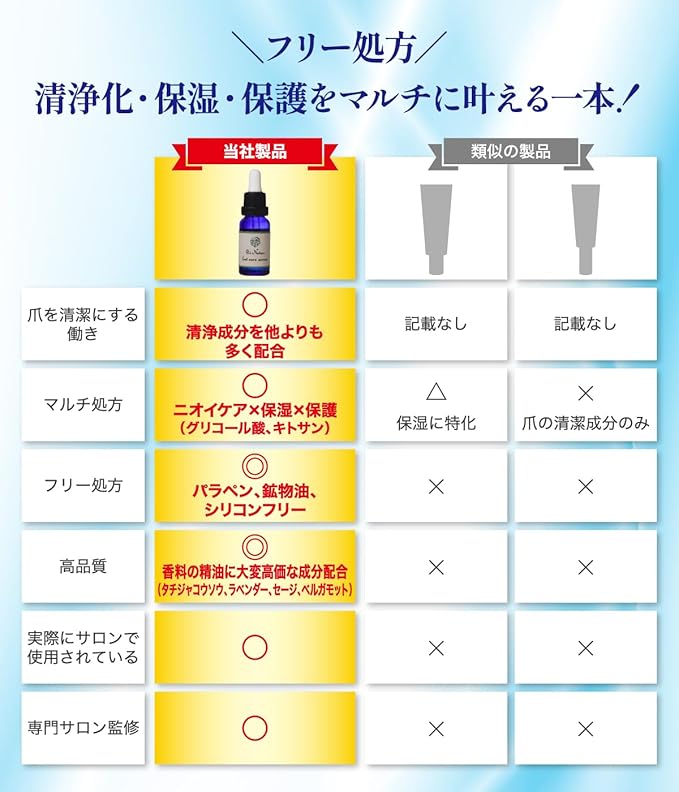 【ポイント②】サラサラとした化粧水のような大変さっぱりとしたテクスチャーで、爪や皮膚に素早く浸透して、べたつきもなくさっぱりとした使い心地でお使いいただけます。
