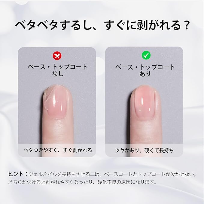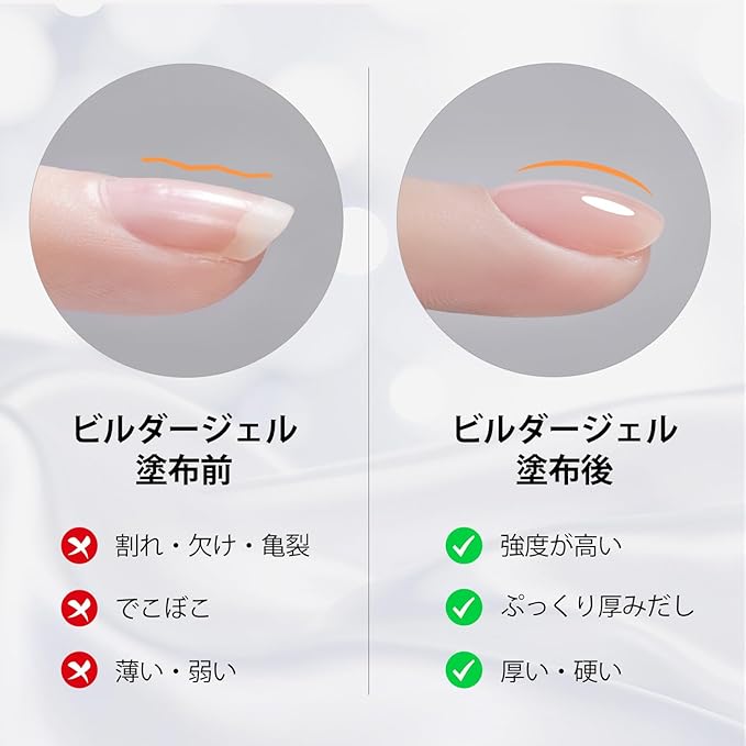 ベースコートが必要:ビルダージェルはベースコートの上に塗布する必要があります。ベースコートなしでは、剥がれやすくなります。