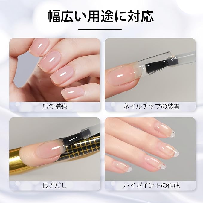 補強や長さだしに:GAOYセルフレベリングビルダージェルは強度が高く、耐久性に優れているため厚みを出して補強したり、長さだしにもご使用いただけます。