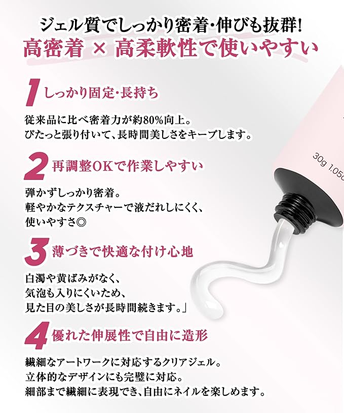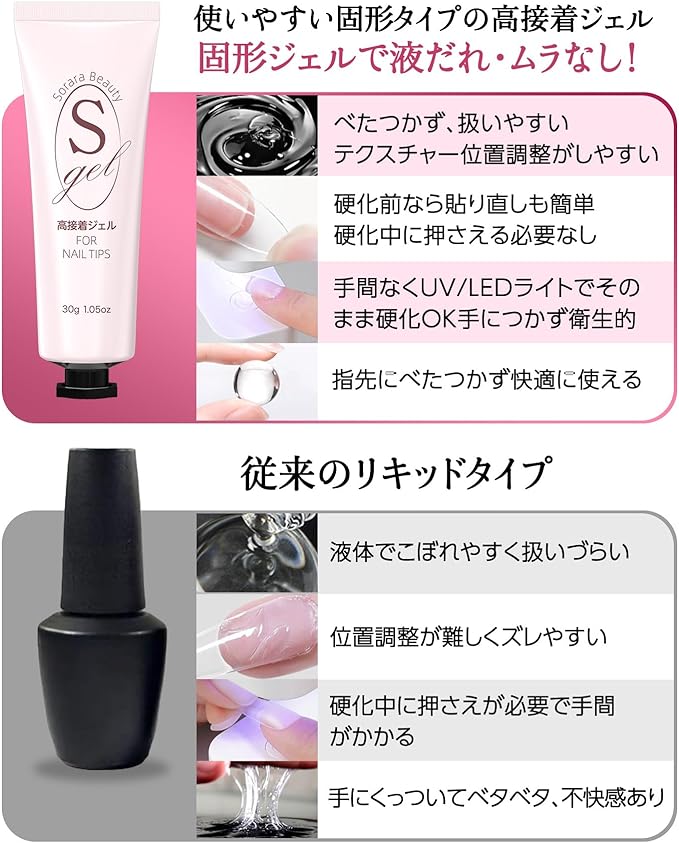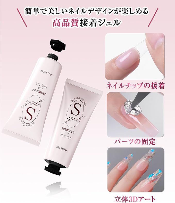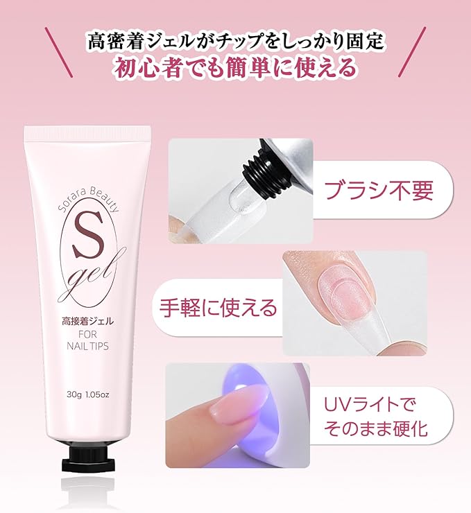 Sorara Beautyネイルチップ専用接着ジェル 大容量30g|UV/LED対応 ソリッドタイプ 高密着 超強力接着 手で押さえ不要|ネイルパーツ・3Dアートにも対応 (訳あり品:軽微なキズ, 透明) | oioioichan