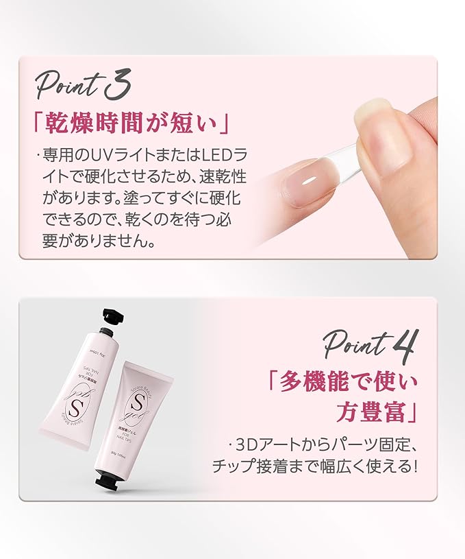 【多用途で便利】 ネイルチップの接着はもちろん、ラインストーンや3Dパーツなどの固定にも対応。これ1本で幅広いネイルアートに活躍します。