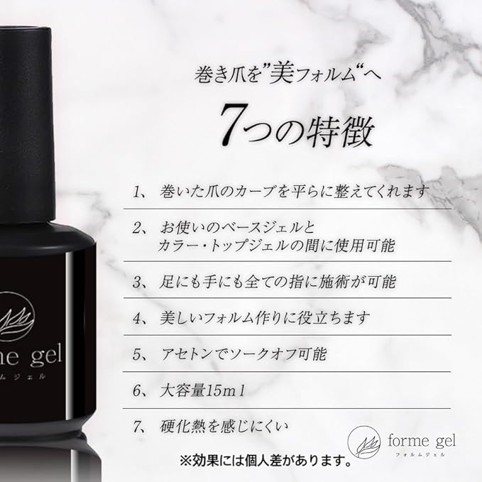 フォルムジェルは転売を禁止しています。 フォルムジェルは爪に塗ってライトで硬化します(ジェルネイルを硬化するLEDライト6W以上が必要です) ※モッタリとした粘度が高めの硬いジェルネイルです
