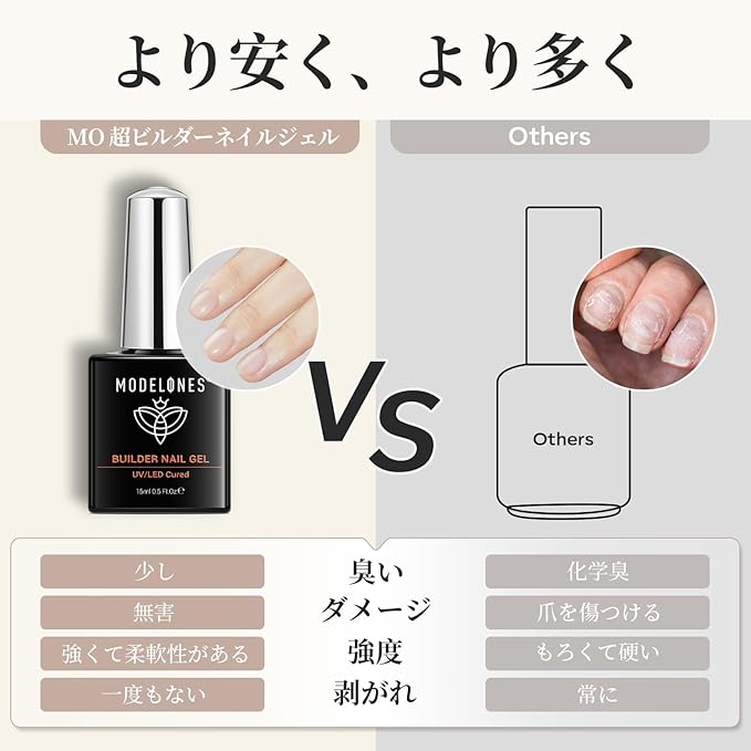 最長28日以上持続: Modelonesネイルジェルは専門的な配合で作られています。気泡や剥がれに別れを告げましょう。この耐久性の高いジェルネイルポリッシュは長持ちし、自然で強く、柔軟で軽量な爪を実現します。正しく使用すれば、その効果は28日間以上持続します
