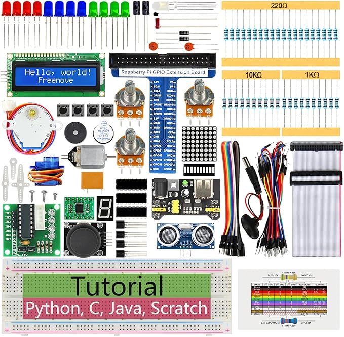Freenove Raspberry Pi 5 4 B 3 B+ 400 Zero 2W 用超音波スターター キット、820ページの詳細なチュートリアル、Python C Java Scratch Processing コード、171個のアイテム、108のプロジェクト(Raspberry Piは含まれません) | oioioichan
