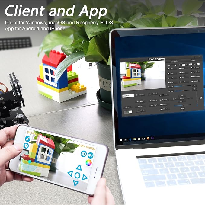 制御方法:アンドロイドスマートフォンやタブレット、iPhone、コンピュータ(Windows、macOS、Raspberry Pi OSを実行)で無線で制御可能