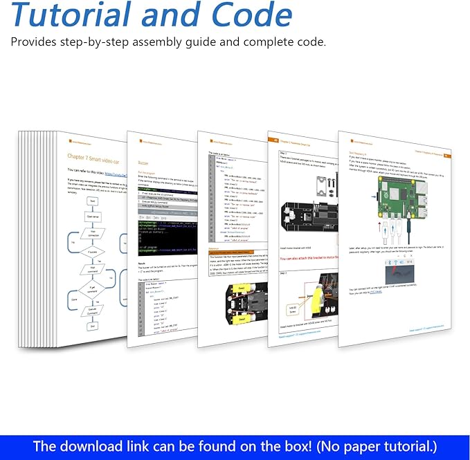 詳細なチュートリアル:ステップバイステップの組み立てガイドと完全なPythonコードを提供(リンクは商品箱に記載されています)(紙のチュートリアルはありません。英語だけ。)