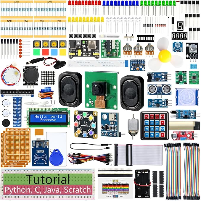 Freenove Raspberry Pi 5 4B 3B+ 500 Zero 2W 完全スターターキット、1170ページのチュートリアル、Python C Java Scratch Processingコード、386点のアイテム、164プロジェクト、カメラスピーカー(Raspberry Piは含まれません) | oioioichan