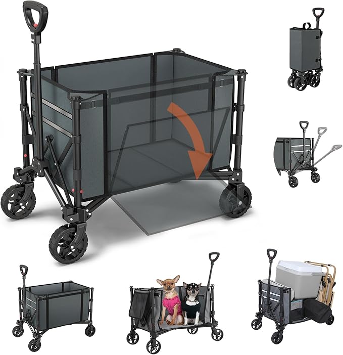 Housolution キャリーワゴン 大容量120L 高耐荷重100kg ミニ 超軽量 アウトドアワゴン 子供乗せれる 折り畳み式 キャンプカート ワンタッチ収束式 自立収納 静音 タイヤ取り外し可能 多地形対応 キャンプ/砂浜/釣り/引越し/買い物/ゴミ出し | oioioichan