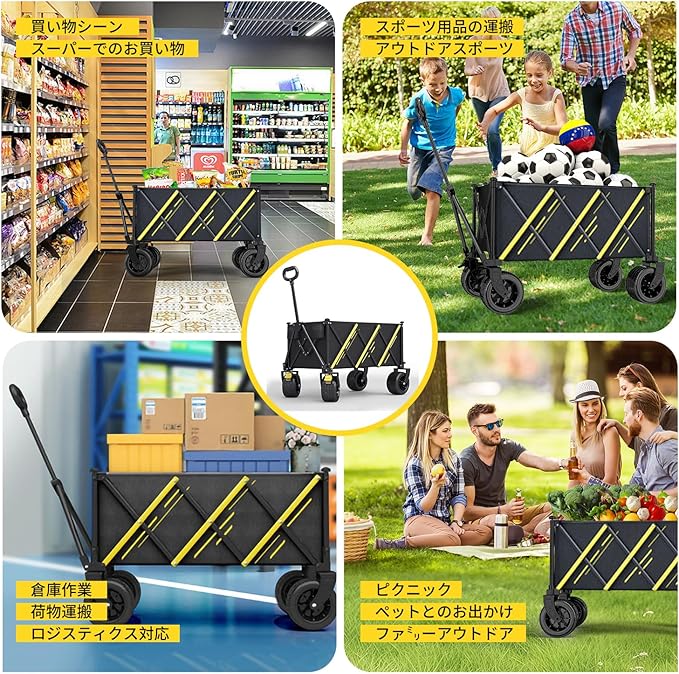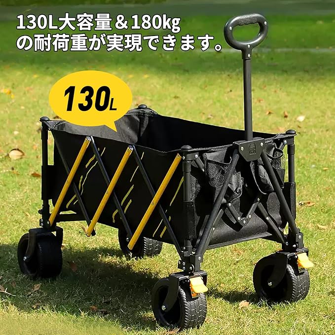 【キャリーワゴン 2025強化版 桜の季節限定】大容量 耐荷重180KG キャリーワゴン キャリーカート キャンプカート 長物対応 取り外し可能タイヤ 大型タイヤ ブレーキ付き 折りたたみ ワンタッチ収束式 キャンプ用品 荷物運び 軽量 大型 おしゃれ キャンプ・レジャー・釣り・ビーチ・運動会・ゴミ出し メーカー3年.付 | oioioichan