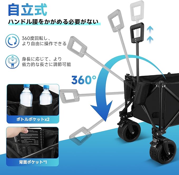 に基づいたデザイン:キャリーカートのフレームとハンドルはに基づいた設計です。に適合したハンドルで、上下左右に位置を調整できます。細部に配慮したデザインにより、推進中に快適な握り心地を提供し、手や体への負担を軽減します。使用時の疲労感を大幅に軽減します。