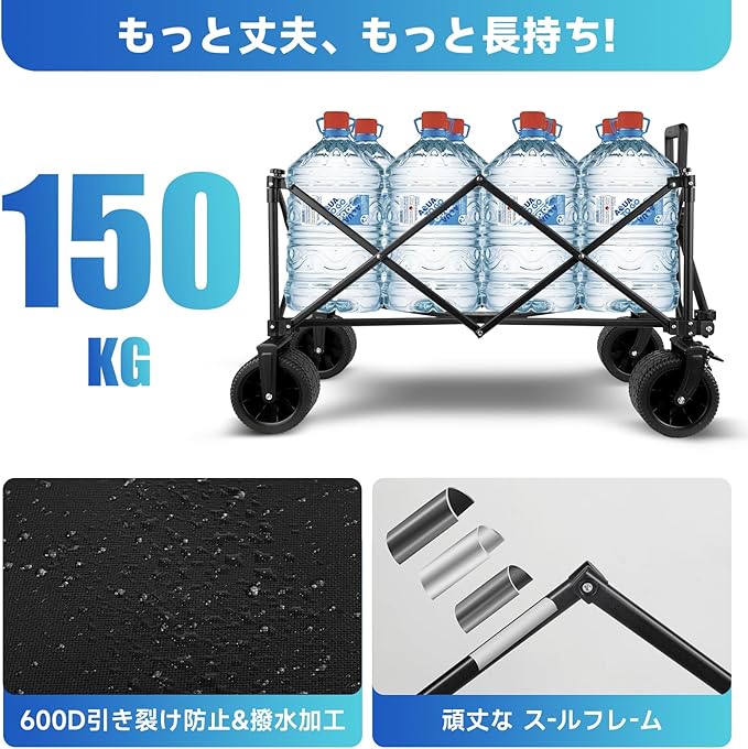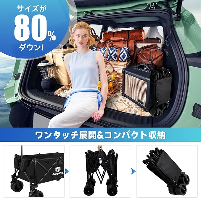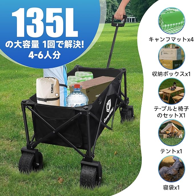 簡単な分解と組み立て:キャリーカートは簡単に分解や組み立てができるように設計されています。ツールを使用せずに簡単に分解や組み立てができ、便利で実用的です。子供やお年寄りでも野外や家で独自に操作や組み立てが行えます。また、このキャンプ用トロリーは折りたたむことができ、コンパクトに収納することができます。