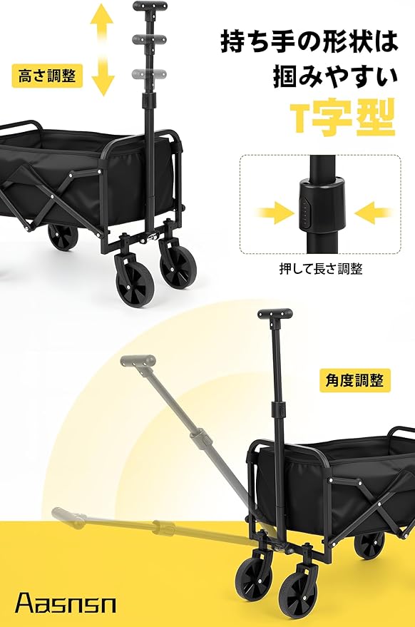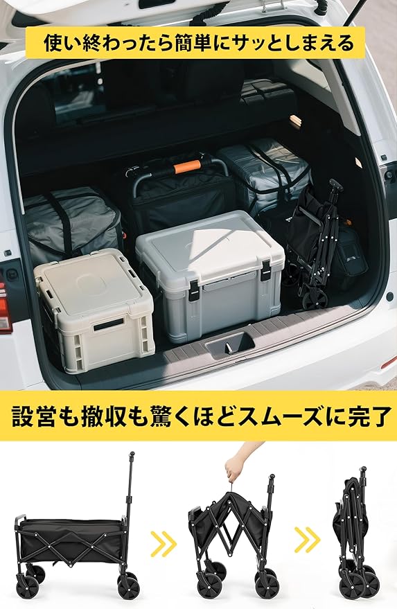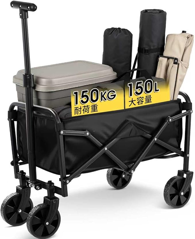 Aasnsn キャリーワゴン 【2025新登場】 キャリーカート 自立収納 台車-カート アウトドアワゴン 大容量 150kg高耐荷重 子供乗せれる キャンプ 折りたたみ コンパクト キャンプ カート ワンタッチ収束式 軽量 静音 キャンプ・引越し・BBQ・買い物・釣り・ゴミ出し・運動会 ブラック-1 | oioioichan