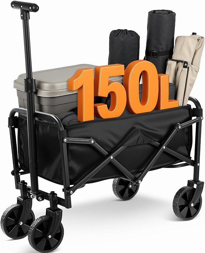 ✅【プロ級の耐久性】2025年新登場コンパクト キャンプ カート150kg 高耐荷重設計(約 300 斤)で、かなりの荷物を積載しても安心。強化スチールフレーム + 耐摩耗ナイロン素材で、キャンプ場などの悪路でも丈夫に使用できます。