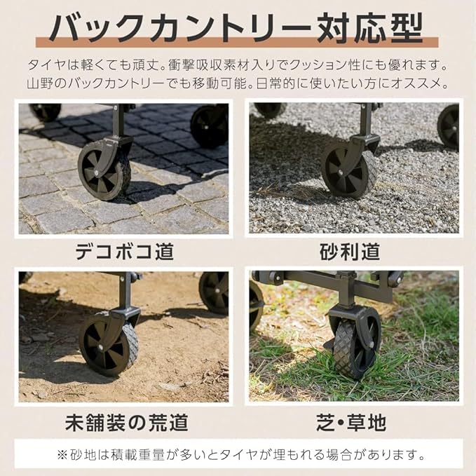 【スチール製フレーム/オックス織りシート】フレームはスチール製で頑丈で耐久性に優れます。シートはポリエステルのオックスフオード織り。厚手で丈夫なうえ、防水加工を施しています。タイヤは、耐衝撃性のあるPVCと硬質で耐熱性に強いPPを使用して、頑丈で移動中の振動が気にならない安定走行に優れます。
