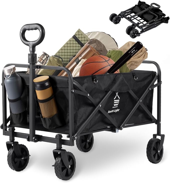 キャリーワゴン キャンプ アウトドアワゴン 折りたたみ 大容量 58L ワゴン車 キャリーカート 長物対応 頑丈 58L 軽量 コンパクト アウトドアキャリー マルチキャリーワゴン 大容量 収納ポケット 運動会 ビーチ 釣り レジャー BBQ キャンプ用品 荷物運び 引っ越しsl-lc120【ユニバーサルstore】 (ブラック) | oioioichan