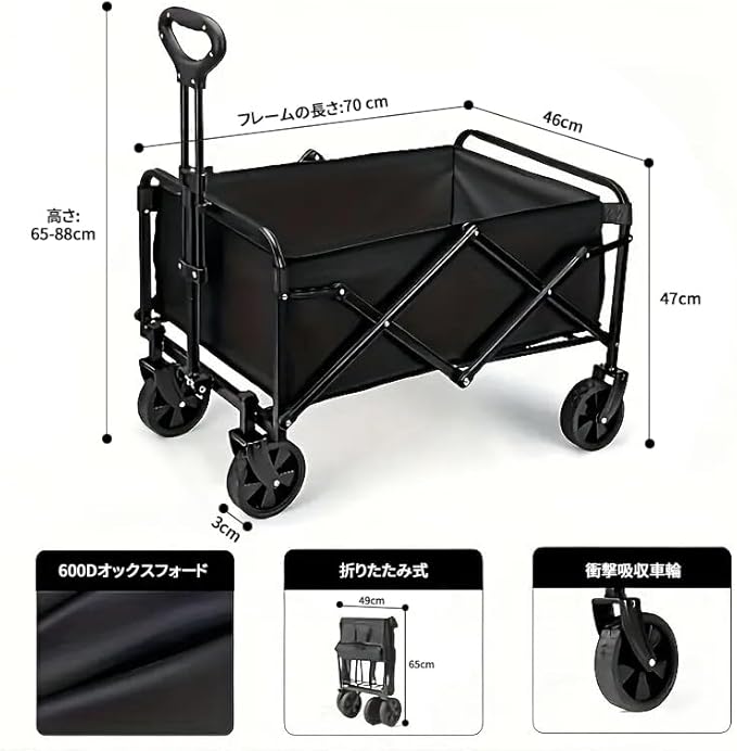 【組み立て不要で即使用可能】 このキャリーワゴンは、引っ張るだけで簡単に折りたたむことができ、持ち運びが非常に便利です。買い物や旅行に最適で、荷物を簡単に運搬し、時間と労力を節約できます。