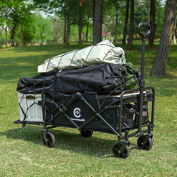 Carrauntoohill アウトドアワゴン 【後部展開可】100L大容量 輕量 折りたたみ キャリーカート 耐荷重150KG キャリーワゴン キャンプ用品長物対応 全地形対応 コンパクトに収納でき キャンプ BBQ 釣り 買い物に最適 (オリーブグリーン) | oioioichan