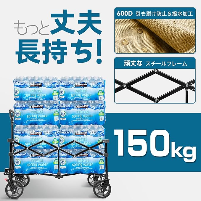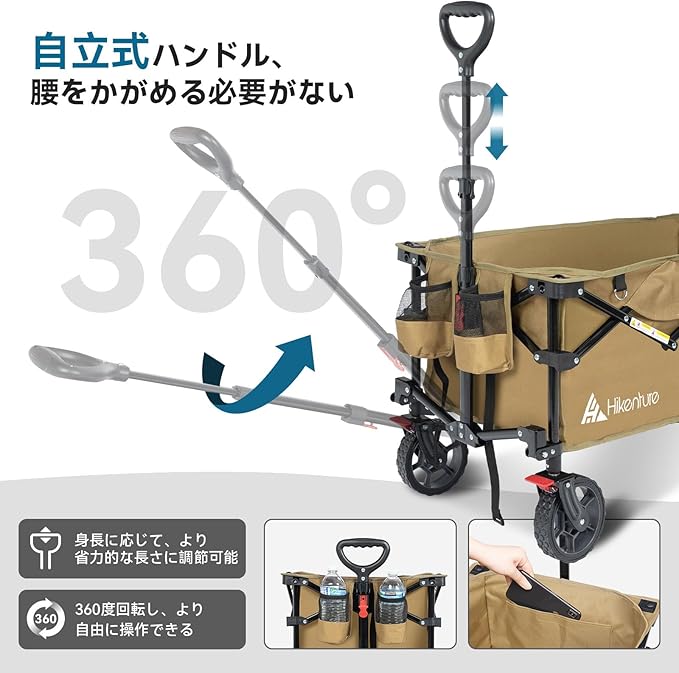 HIKENTURE キャリーワゴン 【大容量135L・耐荷重150㎏】アウトドアワゴン 【スイベル・ブレーキ付き】キャンプ カート 特許取得のコンパクト設計 ワンタッチ収束型 自立式ハンドルデザイン | oioioichan