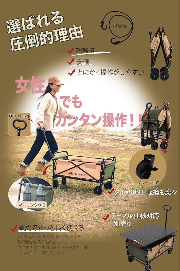 ✅【あらゆるシーンで大活躍】芝生や草の上はもちろん、砂利道などの悪路でもグングン荷物を運ぶことができるため、あらゆるシーンで大活躍! ファミリーキャンプでのキャンプ用品の運搬、運動会でのスポーツ用具の運搬、釣り、買い物、ゴミ捨て、ペットカートの代用など、様々なシーンで大活躍すること間違いありません。