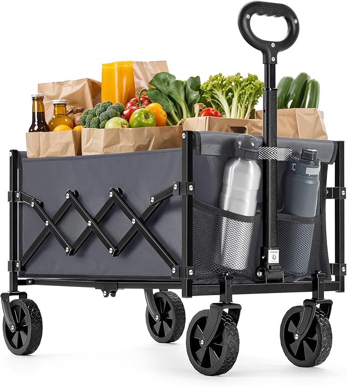 SONGMICS キャリーカートキャリーワゴン アウトドア用キャリーカート 耐荷重180Kg折り畳み式ワゴン、車輪付きの折りたたみ式キャンプカート、屋外、庭用、90L、グレーGFW909G01 | oioioichan