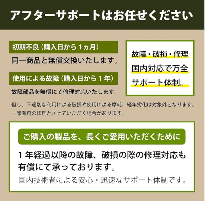 ✅【メーカー.】360日以内に故障した場合は国内サポートチームよる修理、部品交換いたします。取扱説明書に記載されている.の連絡先までご連絡ください。国内技術者による安心・迅速な万全サポート体制。