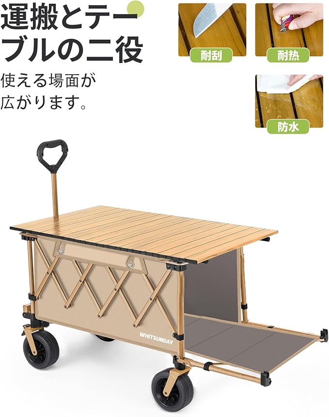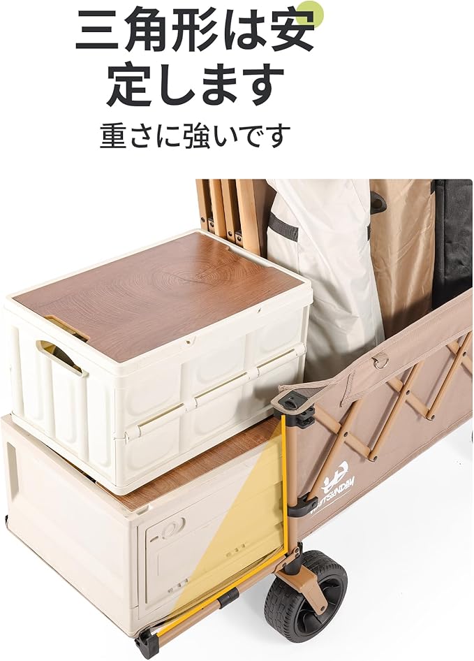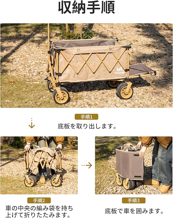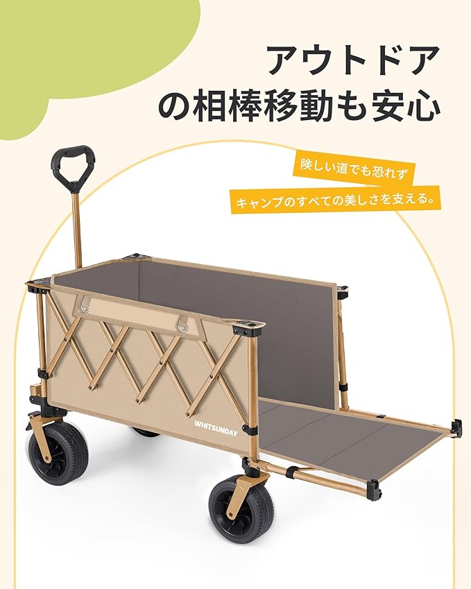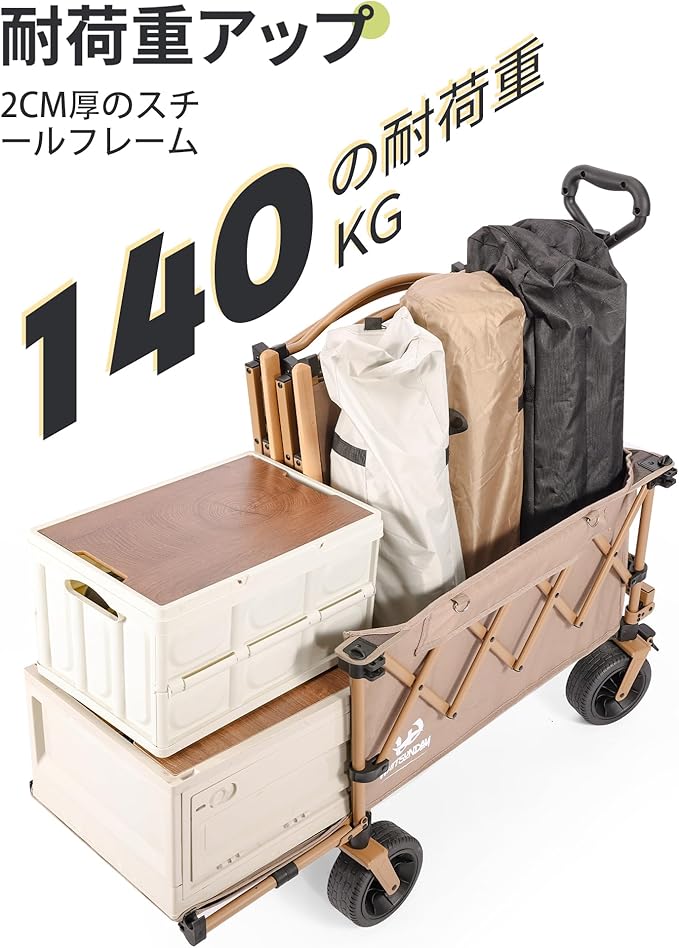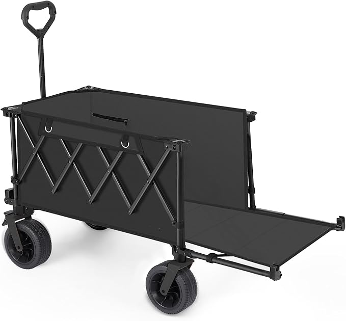 アウトドアワゴン 【後部展開可】特大容量200L 長物対応 キャリー 【ベアリング付き】 ワンタッチ収束型 自立収納 キャリー キャリーカート キャンプカート (Black) | oioioichan