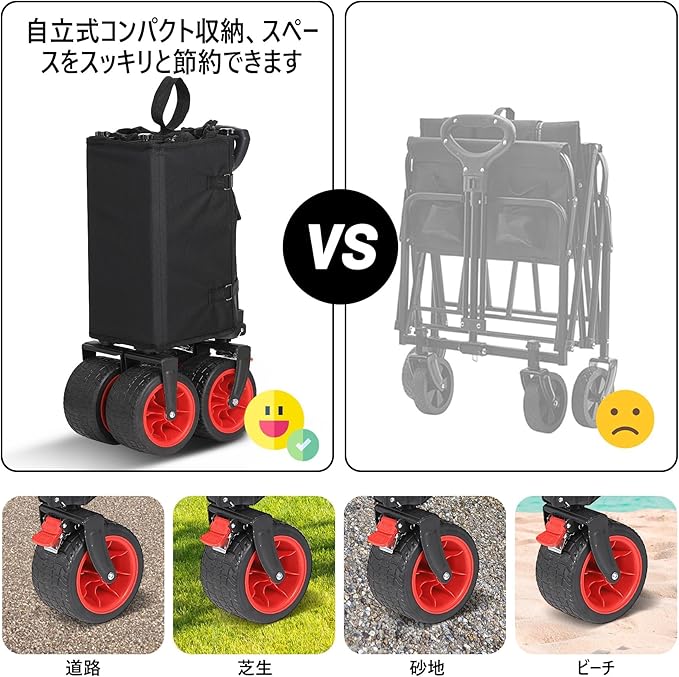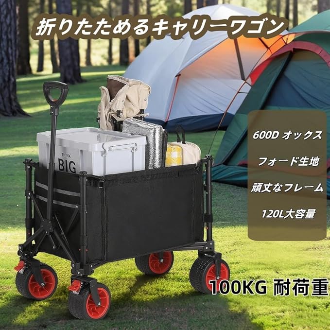 Euker キャリーワゴン アウトドアワゴン 大容量120L 耐荷重100kg 自立収納 ワンタッチ収束式 コンパクト 静音 キャンプ/砂浜/釣り/引越し/買い物/アウトドア | oioioichan