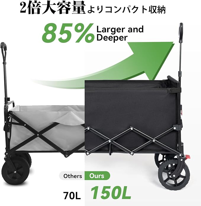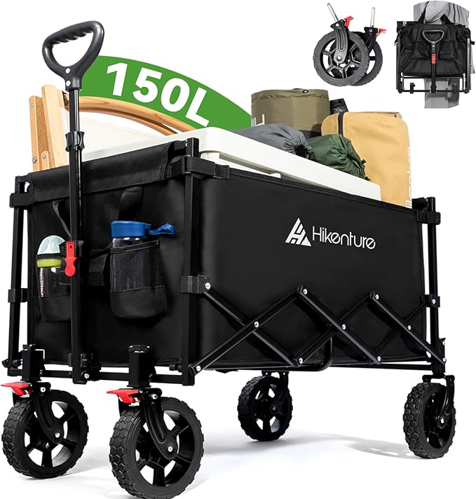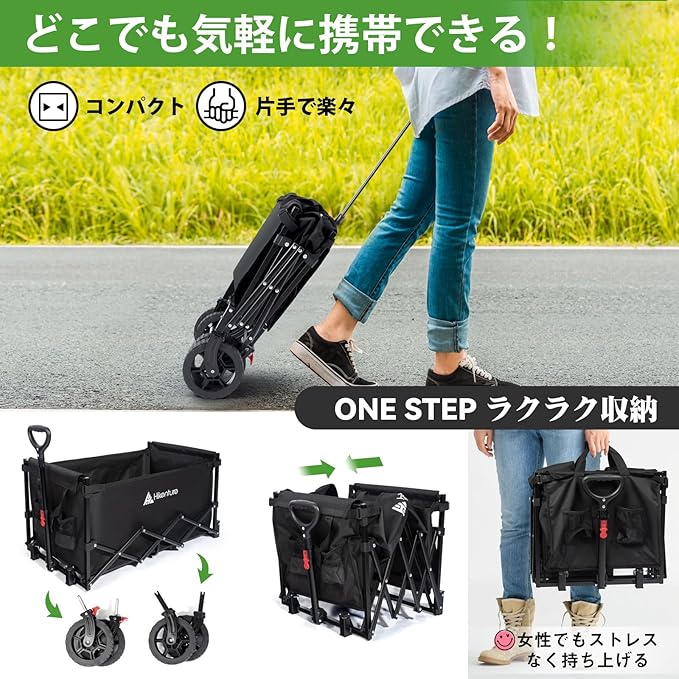 Hikenture【気軽にコンパクト収納・携帯】キャリーワゴン【タイヤ 外せる・150Kg高耐荷・1秒撤収】ブレーキ付 アウトドアワゴン 自立収納 コンパクト 静音 キャンプ カート キャンプ キャリー レジャー BBQ 運動会 荷物運び 引っ越し | oioioichan