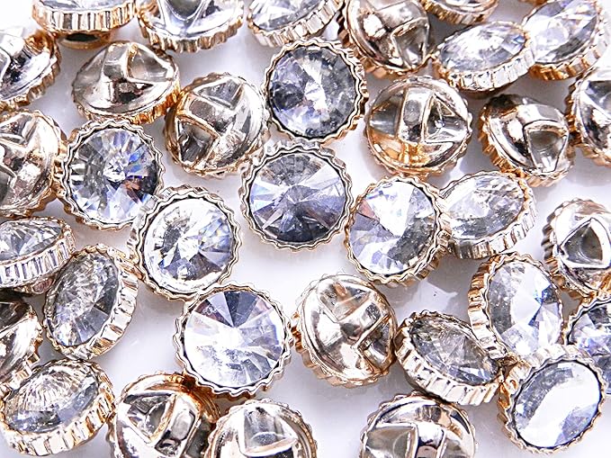 50個 円形 ファセットカット ライトグレーラインストーン シャンクボタン 裏穴 12mm ライトゴールドメッキ クラフト 手芸用品 縫製ボタン アクリルボタン Huey 手芸材料のヒューイ h2701s91 | oioioichan