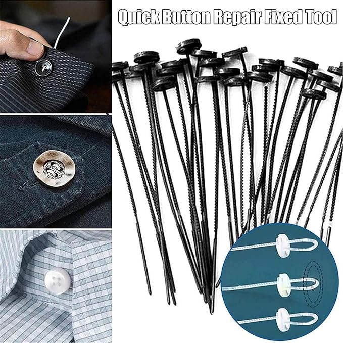【クイックボタン】:針や糸がなくても、どんな生地の穴ボタンでも固定できます。無針縫いボタンで1分以内にボタンを縫うことができます。非常に細いが抵抗力のある糸です。