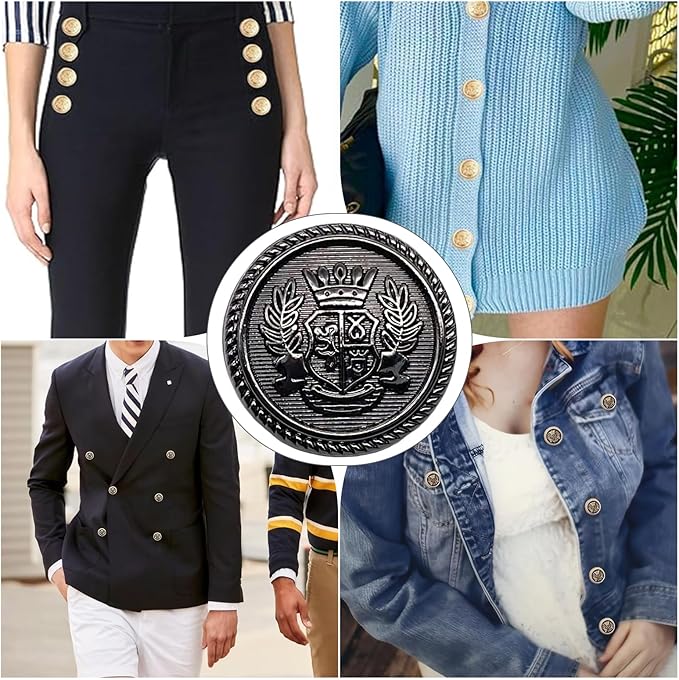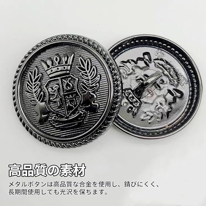 【高品質の素材】:メタルボタンは高品質な合金を使用し、錆びにくく、長期間使用しても光沢を保ちます。