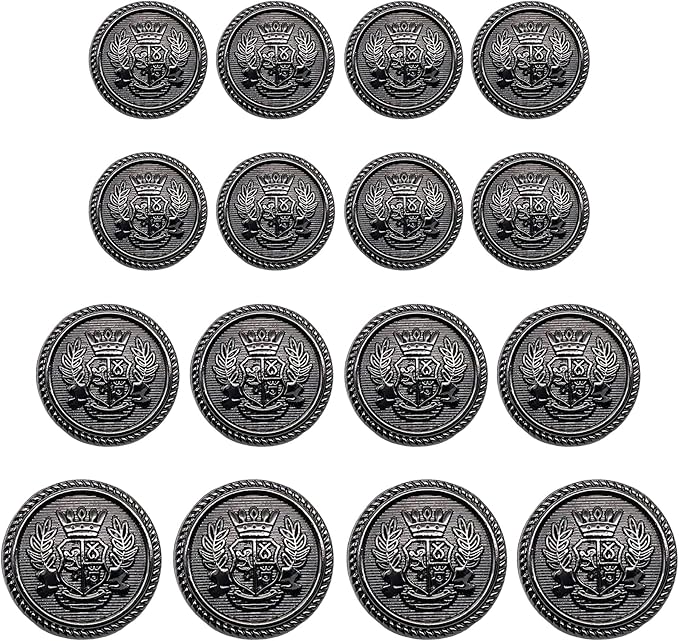 BLOOPIC ブレザー ボタン メタルボタン 16個セット 直径15mm/20mm/25mm 学ラン ブレザー交換用 おしゃれ アクセサリー DIY 手作り (ガンブラック) | oioioichan