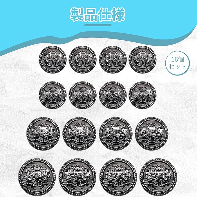 【セット内容】:ボタンセットは15mm 8個、20mm 4個、25mm 4個入り。ブレザー、学ランやDIY用途に幅広く対応可能です。