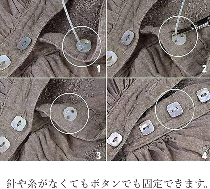 針や糸がなくてもボタンでも固定できます。無針縫いボタンで約1分以内にボタンを縫うことができます。