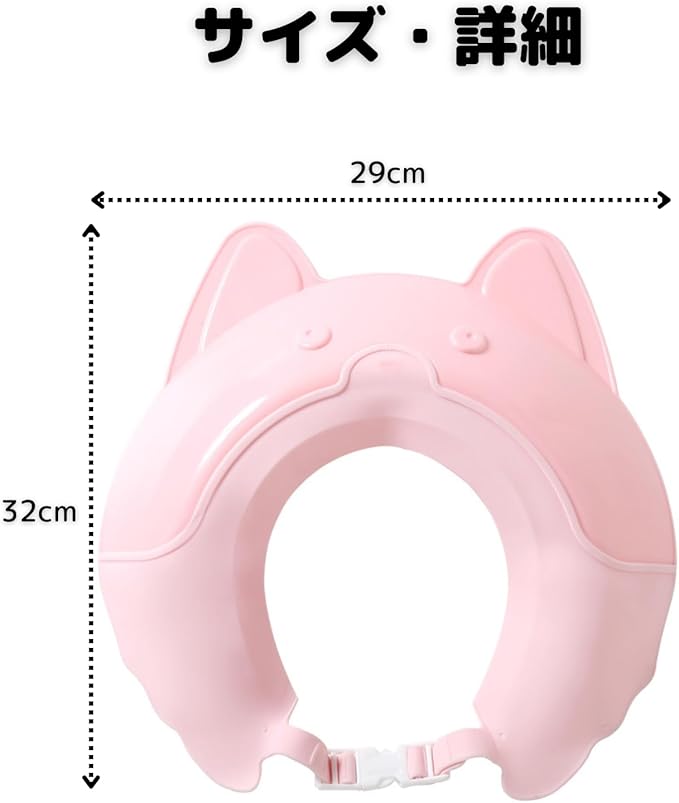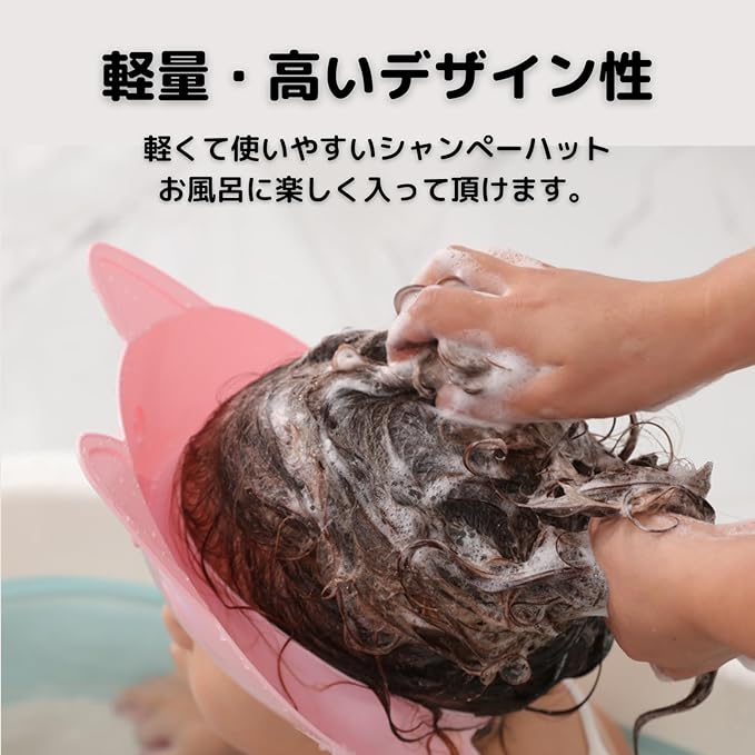 【耳までしっかりガード】 両サイドが広がり、耳に水やが入りにくい構造。中耳炎のリスクを軽減し、快適なお風呂時間をサポートします。