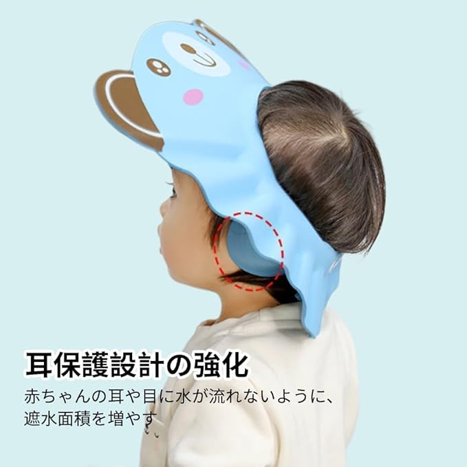 【商品メリット】 時に耳に水や泡が入るのを防ぐイヤーマフです。 敏感な耳を保護し、嫌がるお子様でも安心してご使用いただけます。