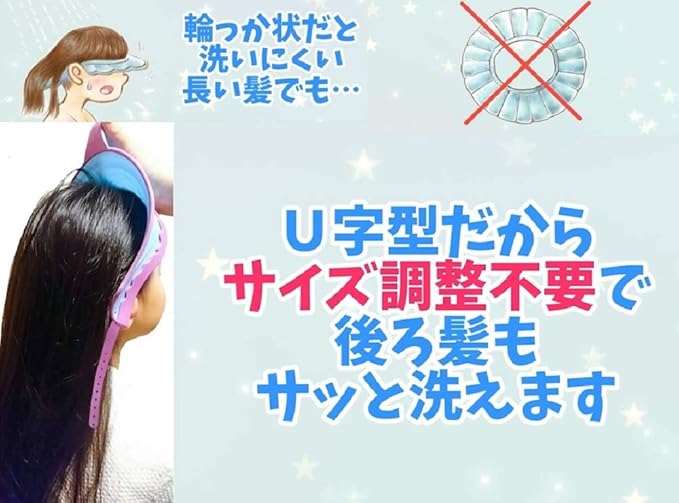 商品特長 形状が、従来のハットに見られる「輪っか」ではなくアルファベットの「U字型」です。そのため、サイズ調整不要、髪の長い女の子も後ろ髪を洗い流しやすい作りになってます。流した水は全て後頭部側へ流れる仕組みです。形状が、従来のハットに見られる「輪っか」ではなくアルファベ…