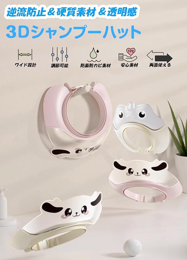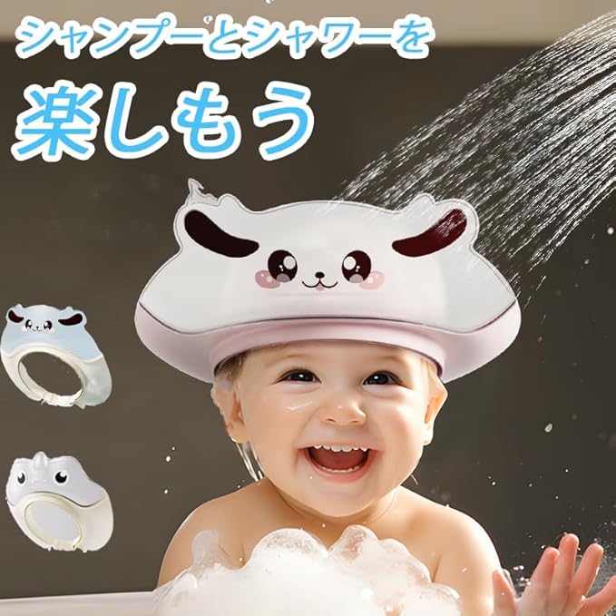ハット 子供 お顔が見えるキャップ 透明素材 目に水が入らない かわいい サイズ調整可能 お風呂 ベビー バスグッズ バス用品 子供用 グッズ 防水帽子 洗髪用帽子 顔と耳が濡れない スナップ付き お風呂用品 BB (ピンク 鹿) | oioioichan