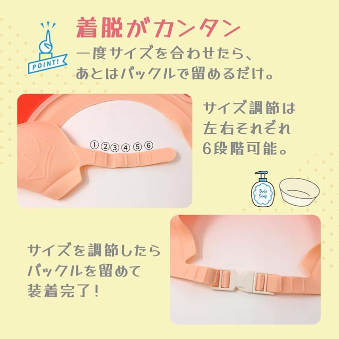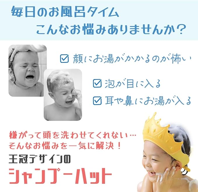 【目と耳を守る安全設計】 洗髪時にお子様の目や耳に水やが入るのを防ぐのでが苦手な子供でも安心してご利用いただけます。